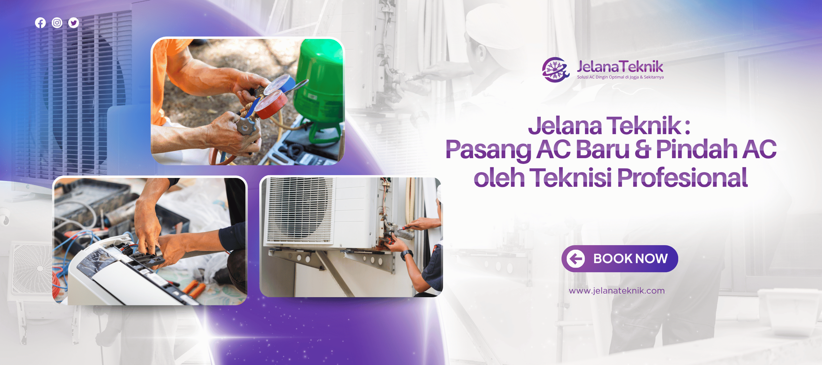 Jelana Teknik melayani jasa perawatan, pemasangan, dan perbaikan AC di Yogyakarta dengan tenaga teknisi berpengalaman. Kami menangani berbagai kebutuhan AC untuk rumah, kantor, hingga bangunan komersial di area Sleman, Bantul, dan Kulon Progo.